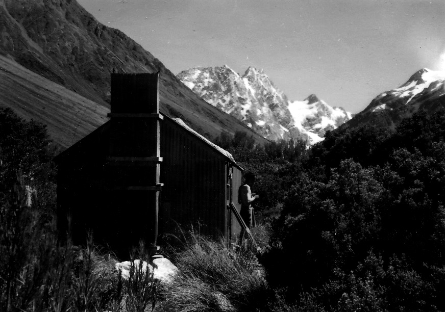 My first transalpine trip south of Arthur's Pass was in 1955 when Mike Kirby, Len Lucas, Graham Brown and I went up the Clyde branch of the Rangitata, crossed over into the Rakaia and came out via Cave Camp below Whitcombe Pass and down the Whitcombe River. Along the way we climbed Newton and Tyndall, Lauper, Whitcombe, Ramsey and Kinkel. This was my first longish transalpine climbing trip and it taught me a lot about camping at altitude, long hot days on snowfields, negotiating icefalls, dealing with stormy weather and living with others. At one stage on Erewhon Col in tents during a violent storm Mike Kirby and I heard a humming sound amid the lightning. Thinking it was the hum that accompanies static electricity we started throwing all the metal objects we could find out into the storm - only to realise (embarrassingly) that the sound was just our mates in the tent nearby starting up their primus for a brew. The weather was generally good and the trip whetted my appetite for the several unclimbed routes we saw along the way. Yes, next summer!